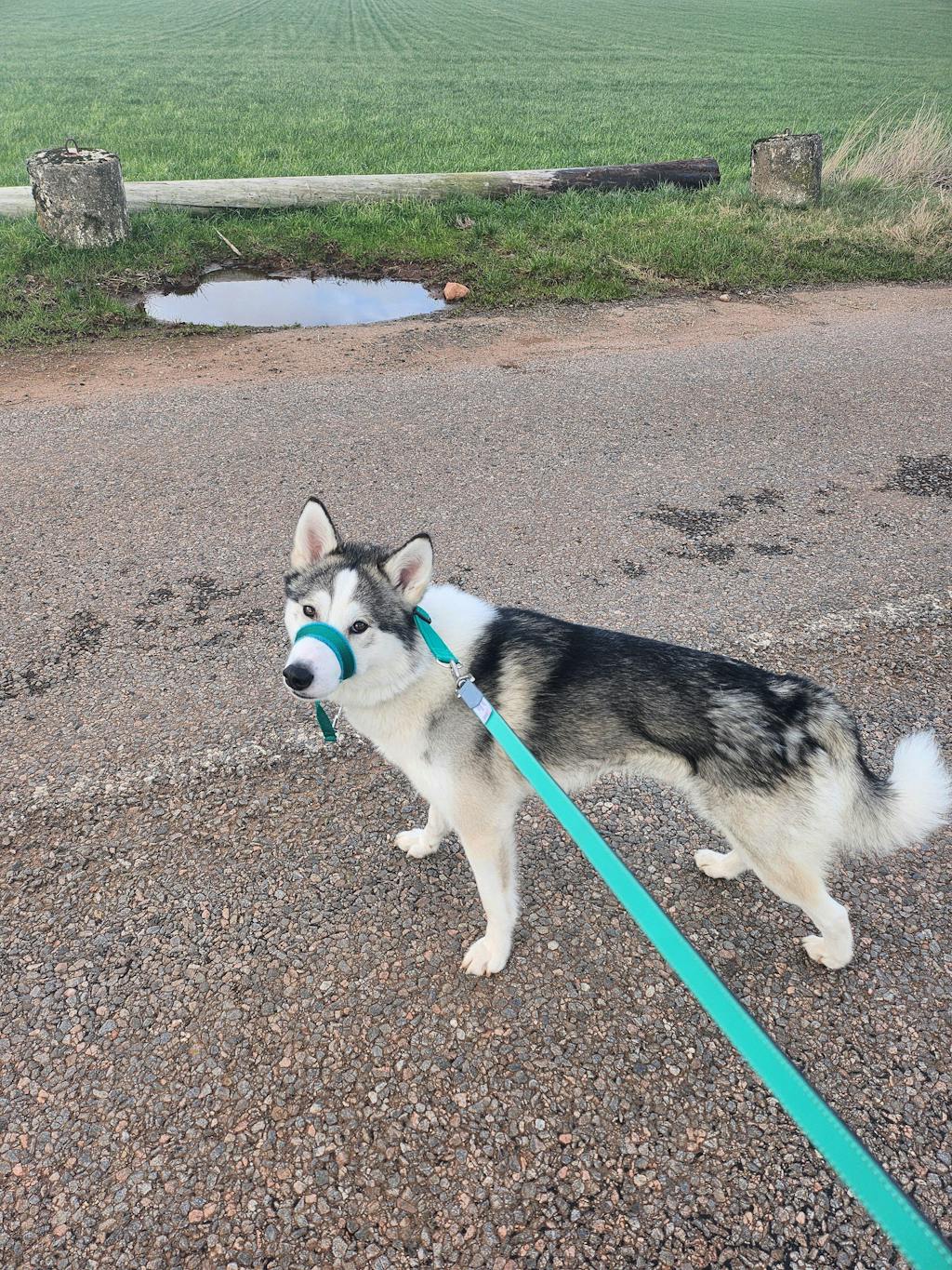 The 2Posh2Pull gently stops pulling, without riding up into the eyes, or twisting the head/spine to one side. It connects to the lead centrally behind the head, so there is no need to keep switching the lead from side to side, when the dog changes direction (like you have to with most other headcollars).