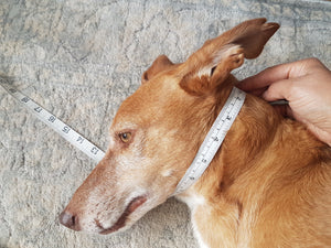 If your dog is still growing, falls in between sizes, or is right at the top/bottom of a size band, we are happy to make it a little bigger/smaller for you. Just pop a note in the comments box at checkout with your dog's actual head measurement and whether they need growing room. Please note: Custom sized products are only returnable if faulty.