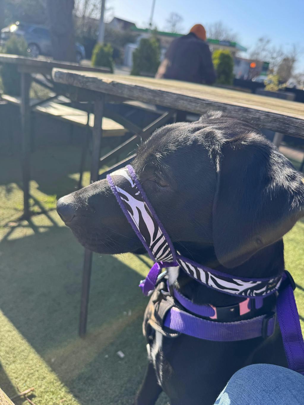 The 2Posh2Pull gently stops pulling, without riding up into the eyes, or twisting the head/spine to one side. It connects to the lead centrally behind the head, so there is no need to keep switching the lead from side to side, when the dog changes direction (like you have to with most other headcollars).